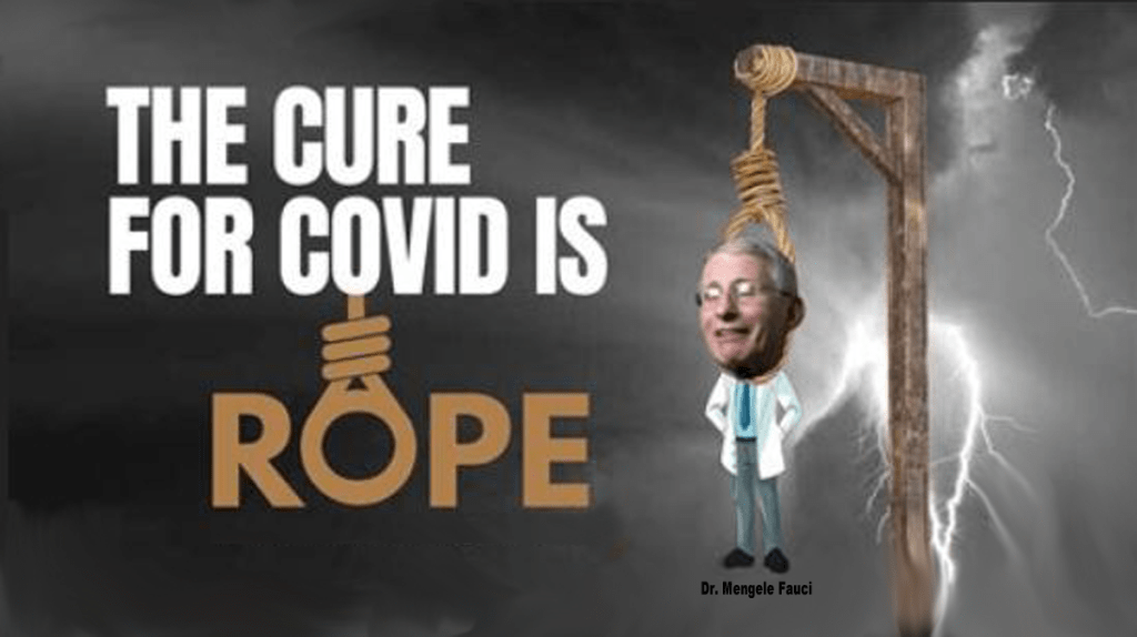 The murderous communists have commissioned the Mengele doppelganger Doctor Anthony Fauci to produce a population reducing vaccine to take aim at the goals of the most brilliant goober nerd turned brain scientist Bill Gates and his chick-with-a-dick wife what-ever-it’s-name-is. A new world order with a minuscule population to control like little children in their pretend grownup little round world. What a pack of pathetic adolescent brats with way too much money to wreak havoc on ordinary peace loving normal people who just want to be left alone. Not a very wise move to disturb their quiet worlds with an agenda of ridiculous selfish demonic ideas. Do they really think they will never have to pay any consequences? Would it be fair for them to skate into paradise without ever experiencing the pain they’ve inflicted upon the world? I think not. I think there is a special path designed for them if they manage to survive this life of virtual irresponsibility. I think something much like the multiple levels of burning hell lie in store for them. And if they manage to destroy all that is good, the innocent children and the like before they meet their eternal fire pit I’m sure the flames of an atomic burning earth will vaporize their bodies and devour their souls in the most agonizing fashion. All of this cries out for their final punishments. Justice lies at the end of a rope and there are plenty of miles of rope to handle every last one of them. We need to be allowed the luxury of seeing them flail and gasp for their lives with an infinite fear of helplessness and despair as they gurgle their last breaths.